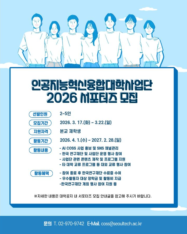 서울과학기술대학교 인공지능혁신융합대학사업단(AICOSS) 서포터즈 모집
