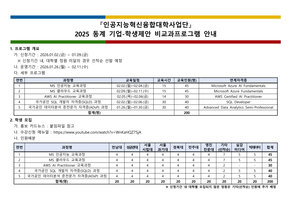 | 제목 | [인공지능혁신융합대학사업단] 2025 동계 기업-학생제안 비교과 프로그램 운영 안내 | ||||
